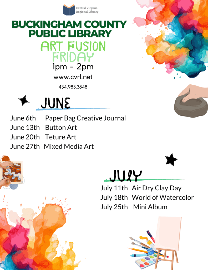 Come and Color Our World this Summer with Ms. Pearl’s Art Fusion Fridays from 1pm-2pm.